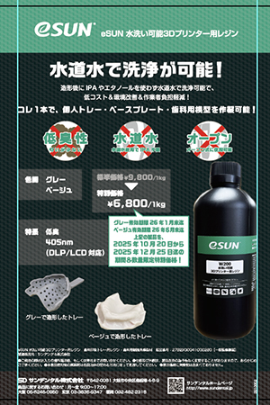「eSUN水洗い可能3Dプリンター用レジンお試しキャンペーン」を実施致します